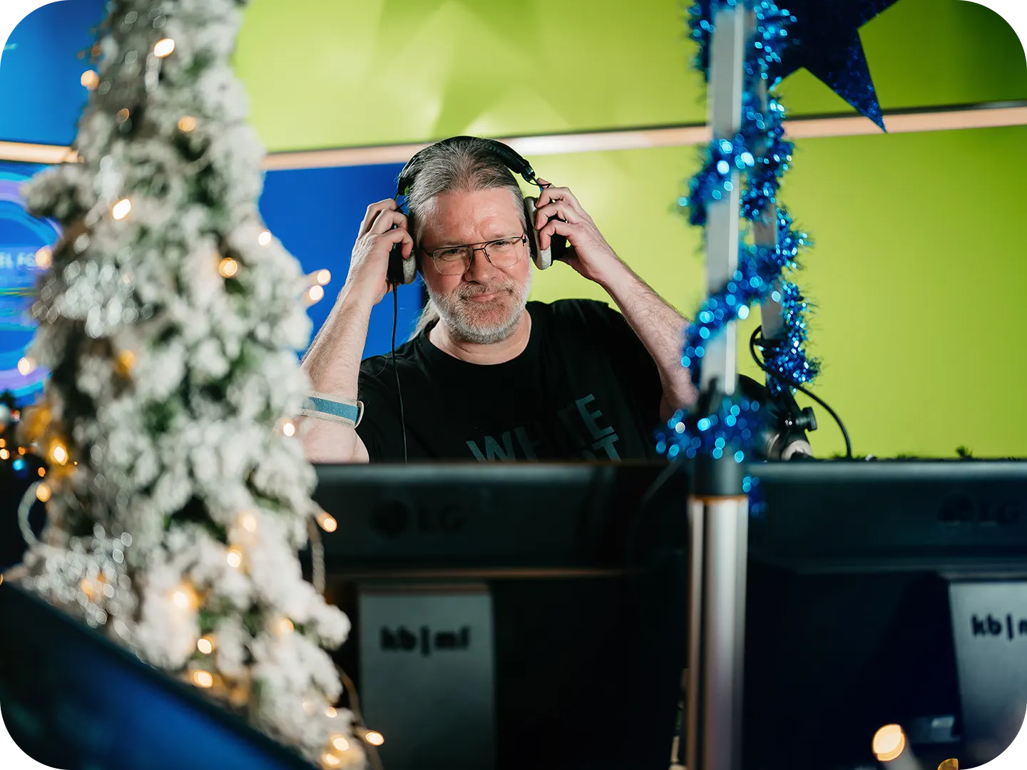 De Kersttijd. Een nog mooiere studio en extra gezelligheid. Sky Radio is tenslotte ‘The Christmas Station’ en dat merk je overal. Ook leuk om de Kerst hatende vrienden even gek te maken…