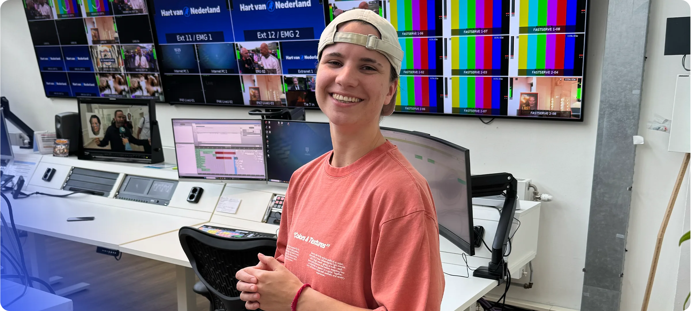 Ik werk als editor en mediadesk-operator voor Hart van Nederland, Shownieuws en Nieuws van de Dag. Klinkt technisch? Dat valt mee! Aan de mediadesk ben ik de eerste halte voor al het videomateriaal dat binnenkomt — van livebeelden tot persmomenten. Alles check ik, sorteer ik en maak ik klaar voor gebruik. Als editor maak ik de items tot in de puntjes af. Elk shot, elk geluidje, elke overgang moet kloppen. Mijn missie? De kijker niet alleen laten zien wat er gebeurt, maar vooral laten voelen wat er speelt. Of het nu gaat om groot nieuws, glitter & glamour of een indringend achtergrondverhaal.Soms loopt alles volgens schema, en soms… schakelen we binnen seconden omdat er breaking news is. Juist die hectiek, de adrenaline én het teamwork maken dit werk supertof.