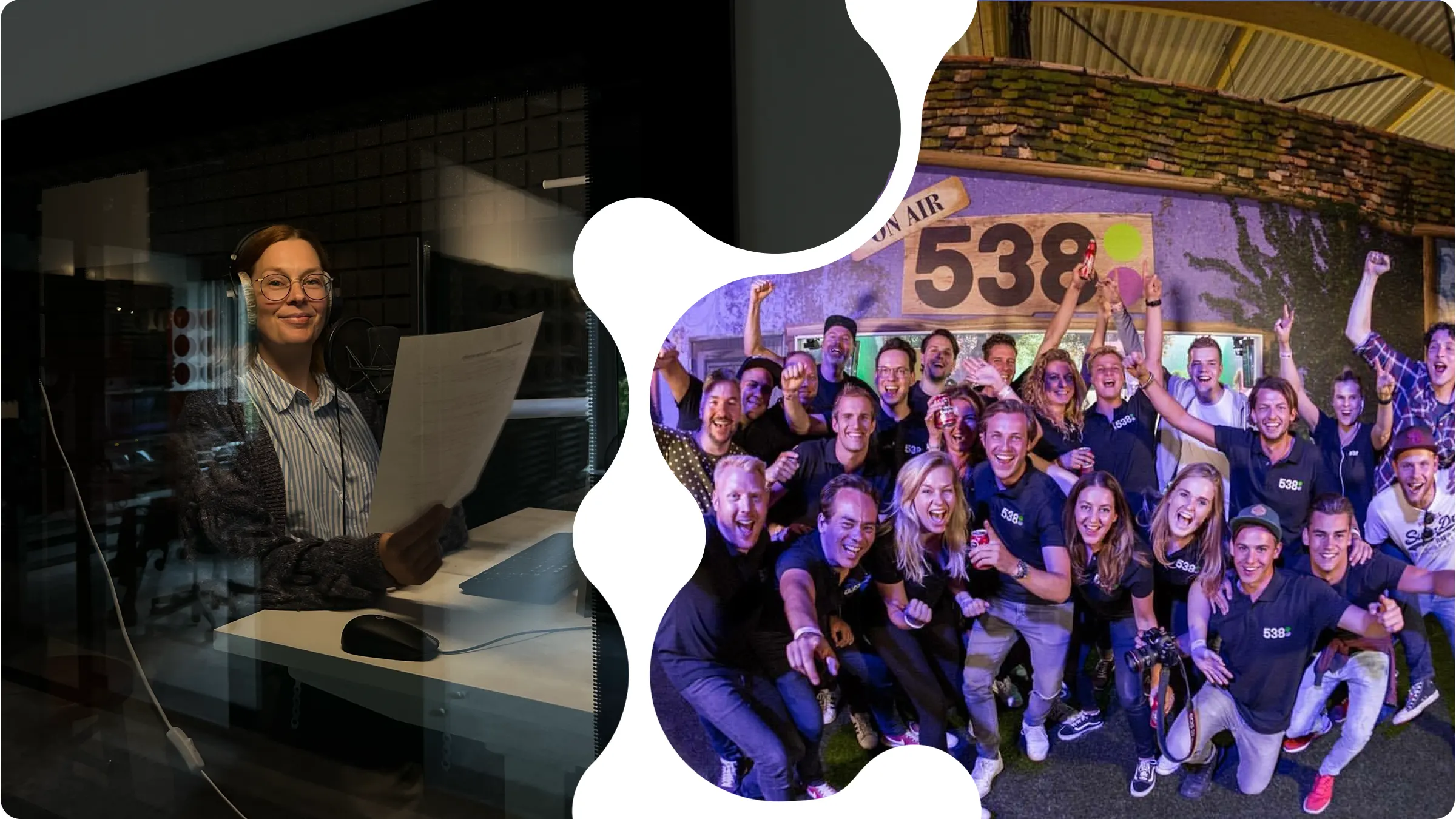 Ik ben tien jaar geleden gerecruit om Hoofdredacteur Digital te worden voor eerst alleen 538, maar dat werd al snel alle radiomerken van Talpa Network. Voor mijn eerste gesprek dacht ik nog, ‘de radio… ik weet niet of dat wel iets voor mij is’. Maar het moment dat je het pand binnenstapt voel je het gewoon. De energie. Na anderhalf jaar gaf ik het stokje door aan mijn eindredacteur, het team stond, en werd ik Format Lead. Een hele vage functie. Een jaar later werd ik gevraagd een Creative Department op te zetten. En zo ging ik het hele bedrijf door, elke 1,5-2 jaar een nieuw team of afdeling neerzetten. Momenteel is dat Corporate Communicatie.