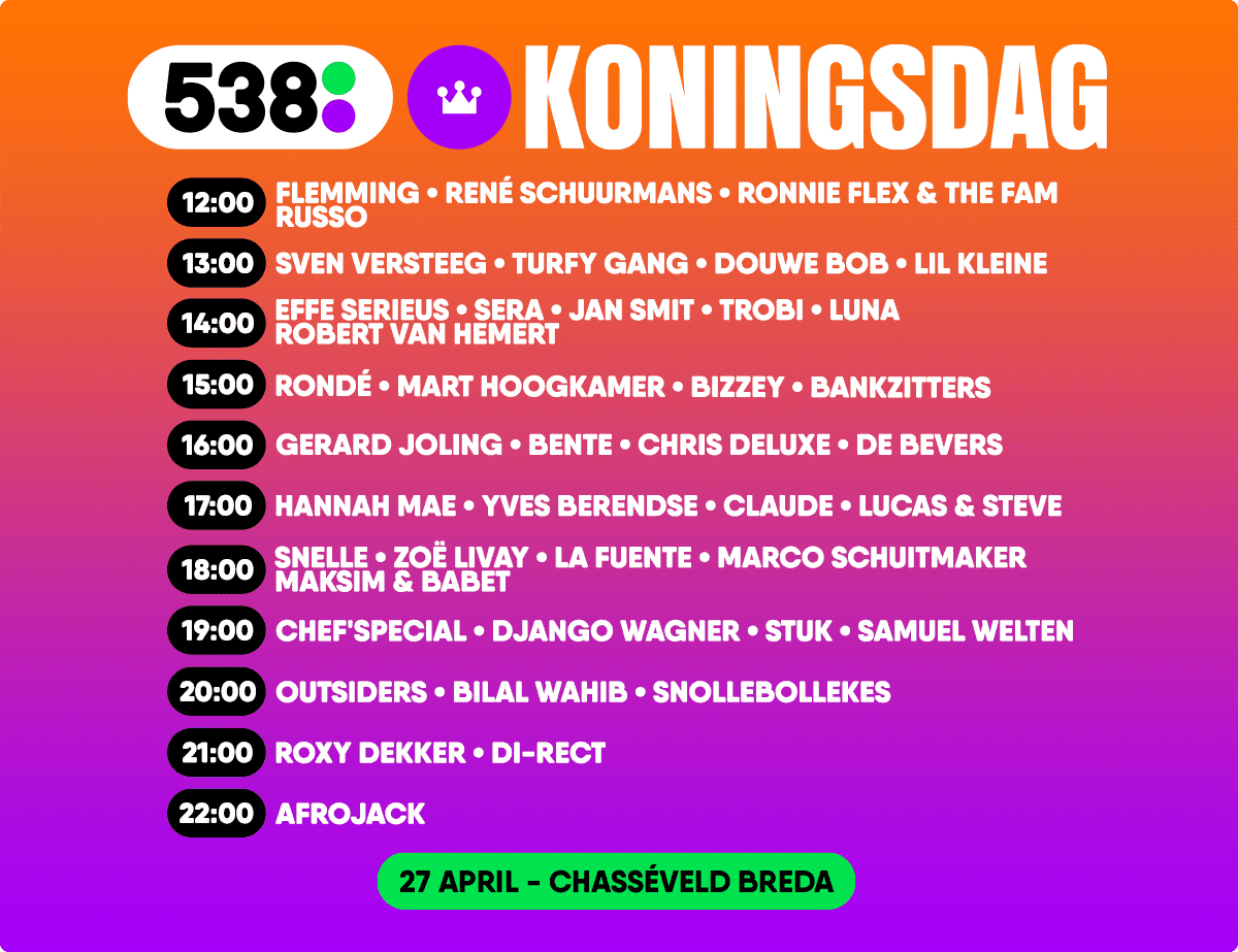 Meer informatie: 538.nl/koningsdag